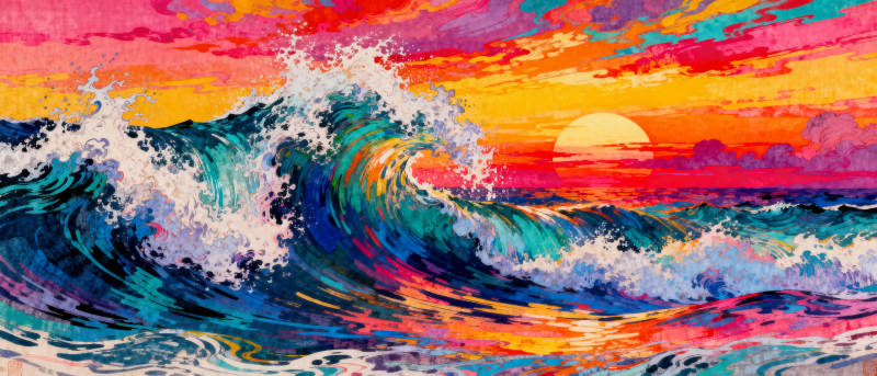 彩虹海浪日落