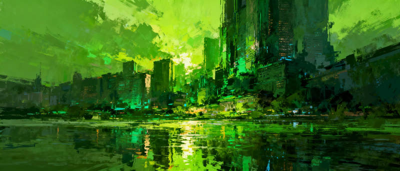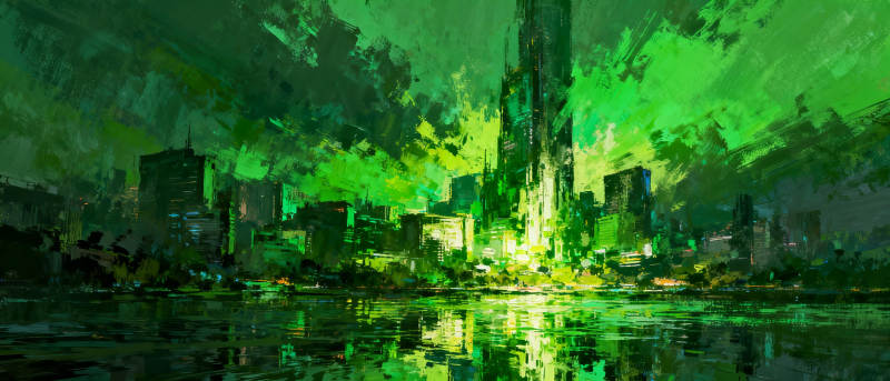 绿光都市夜景