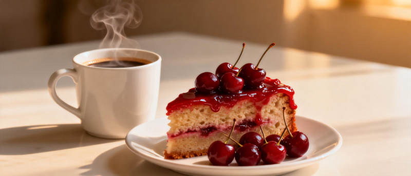 樱桃蛋糕配热咖啡