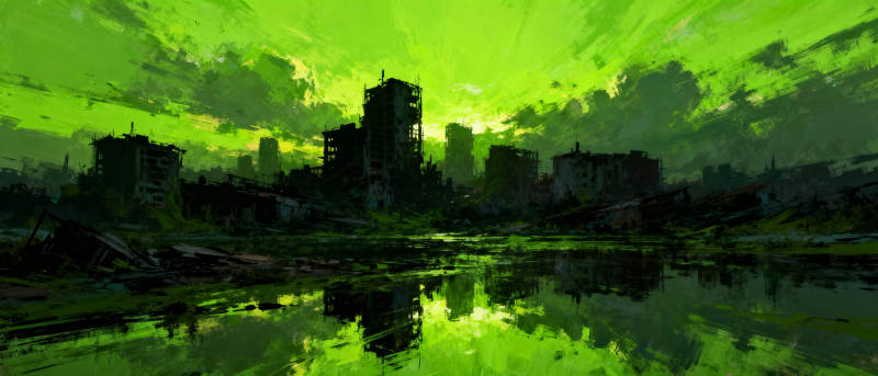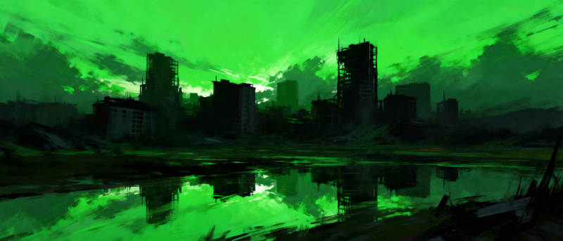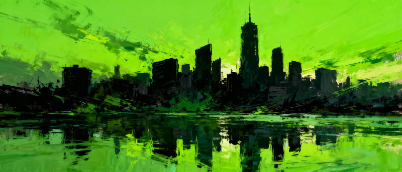 绿夜都市倒影