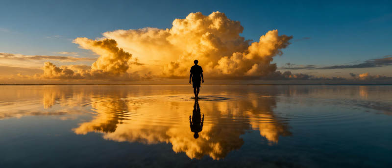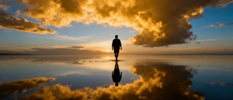 夕阳下的倒影行者