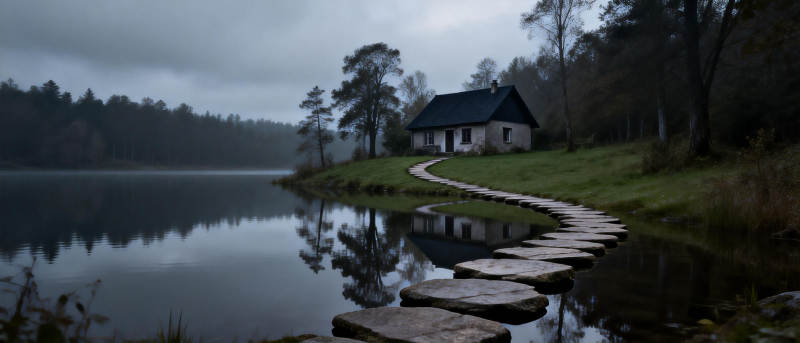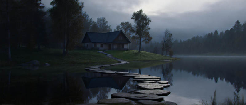 湖畔小屋静谧景