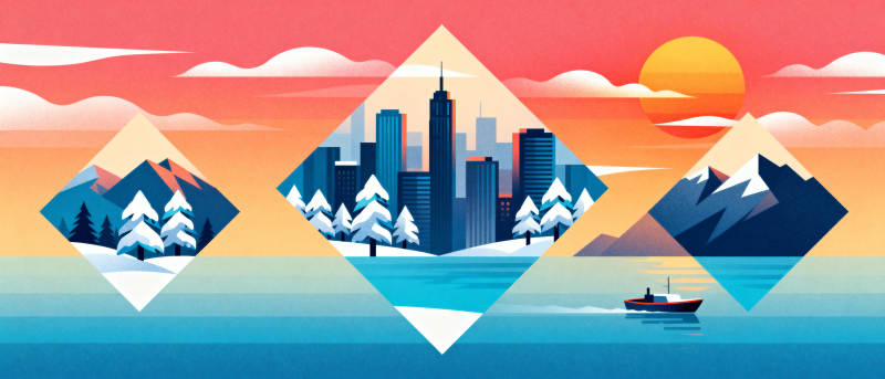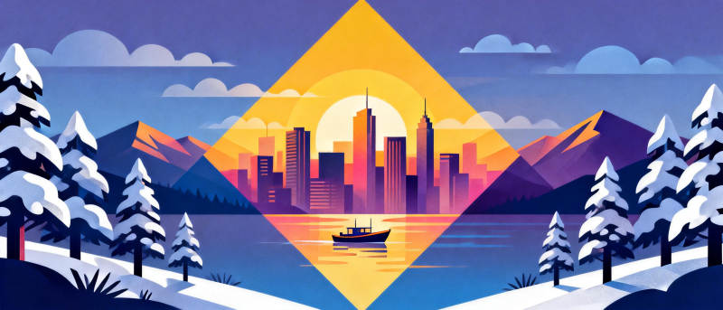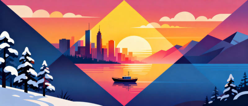 雪景都市日出图