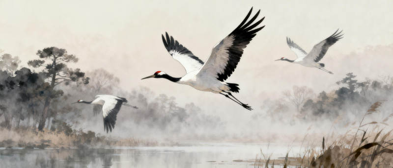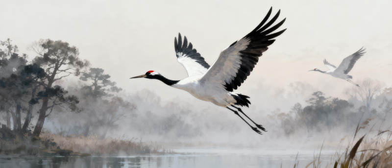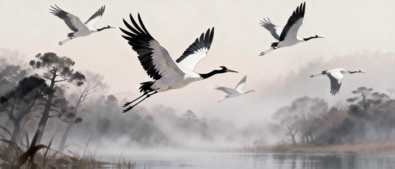 鹤舞晨雾