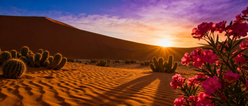 沙漠日落花海