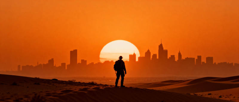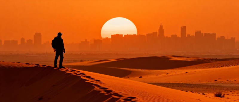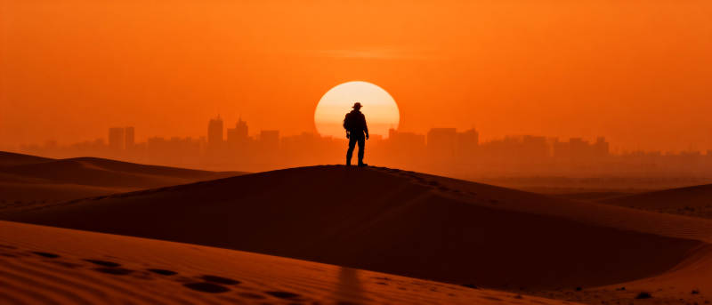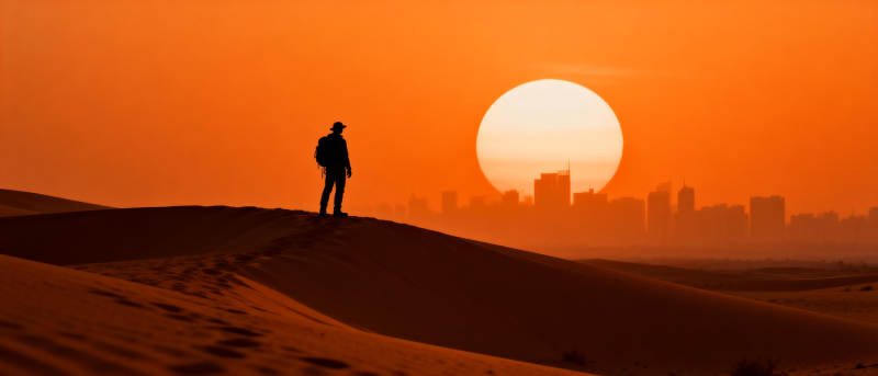 沙漠日落行者