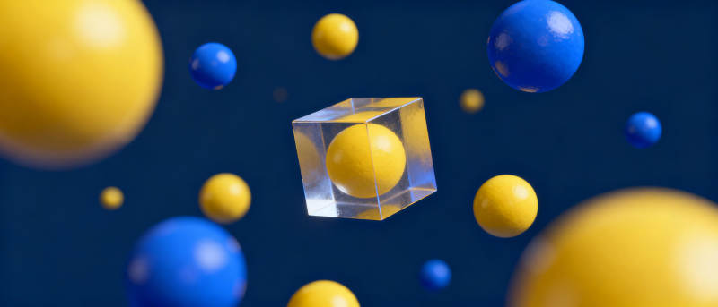 透明立方体与彩球