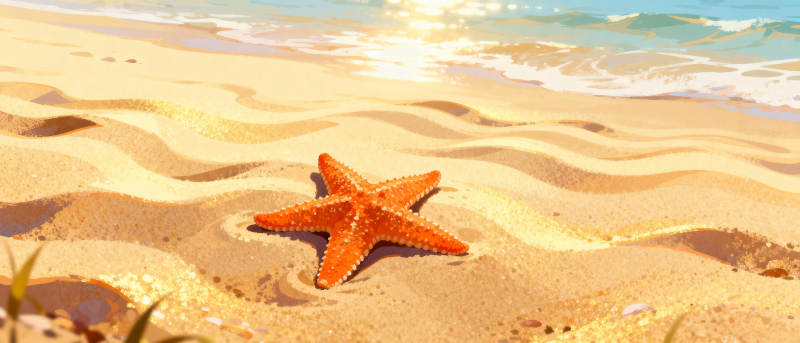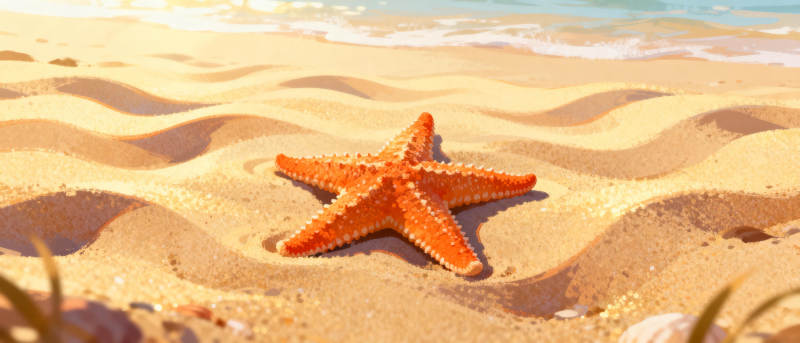 沙滩上的海星与贝壳