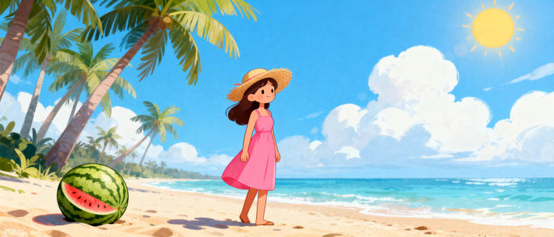 海滩上的西瓜女孩
