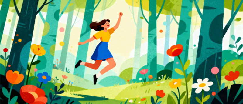 林间跃动的少女