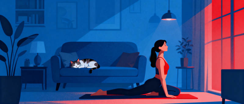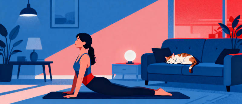 夜练瑜伽 猫伴静谧