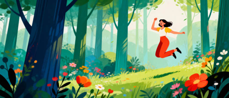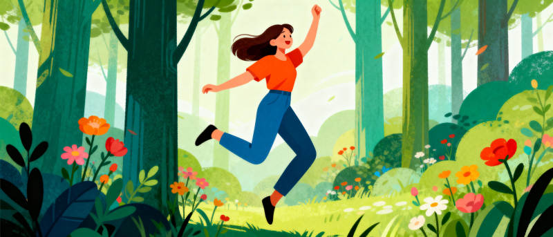 森林中的跳跃女孩