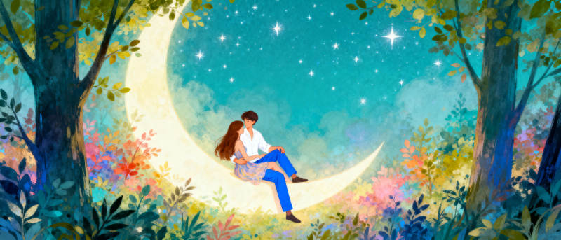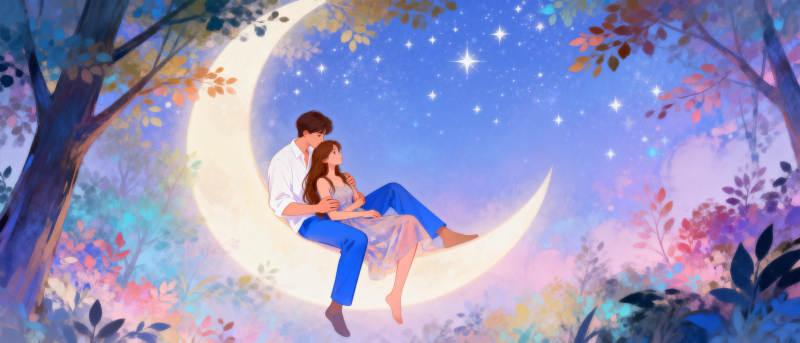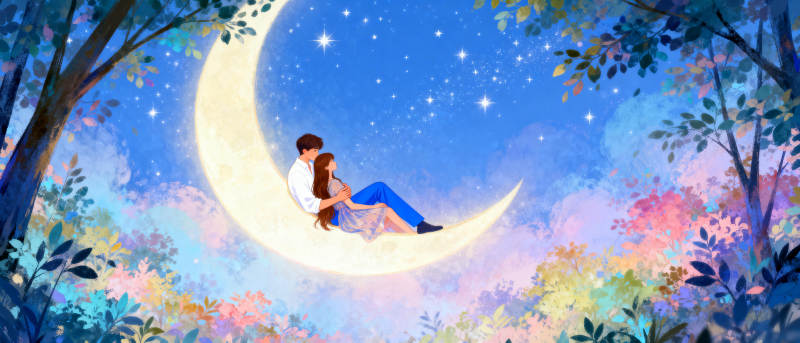 月下情侣共赏星河