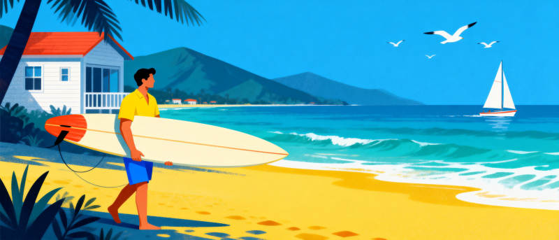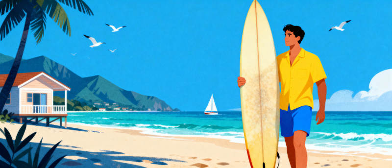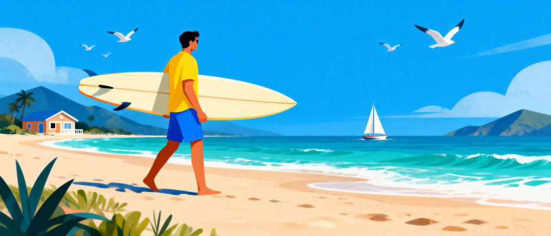 沙滩冲浪时光