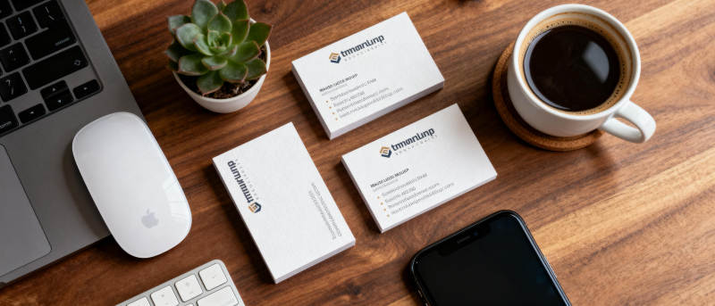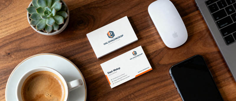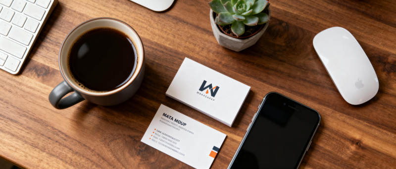 办公桌上的咖啡与名片