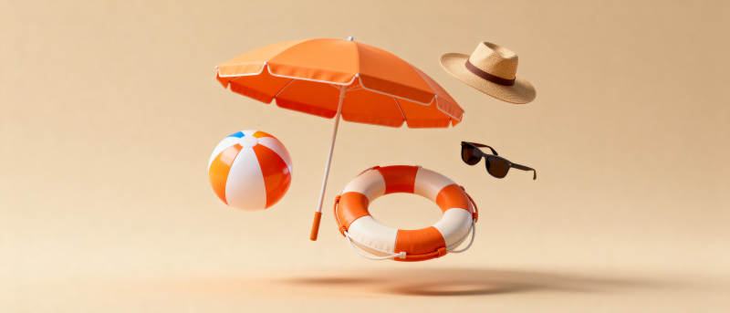 夏日海滩用品飘浮