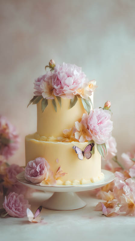 粉色蛋糕鲜花点缀