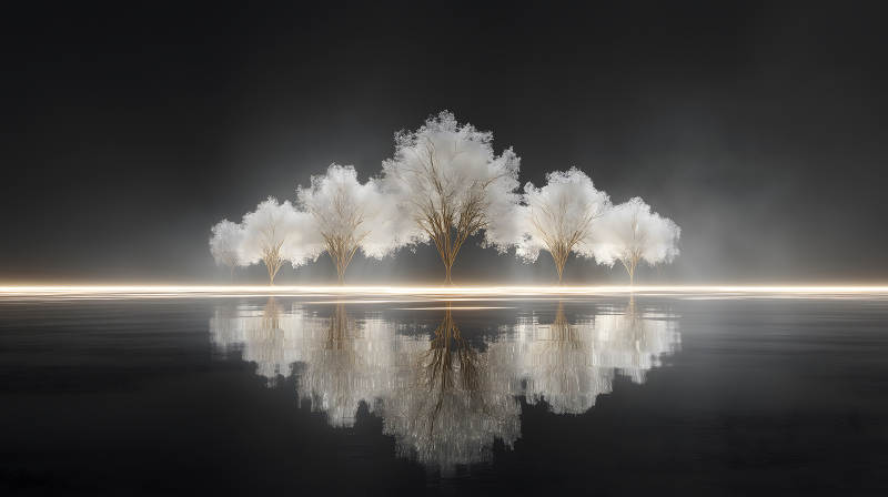 梦幻般的树与倒影在黑暗中