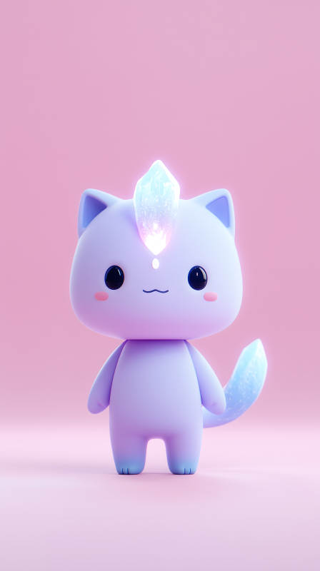 卡通猫咪头顶水晶粉色背景可爱风格