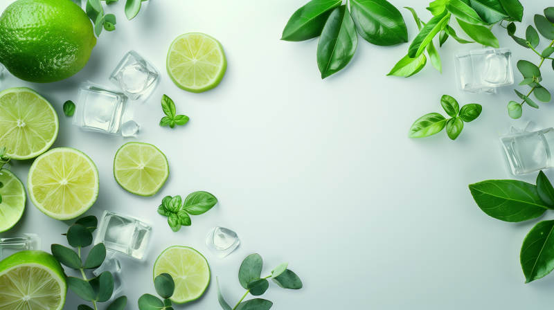 清新柠檬冰块绿叶
