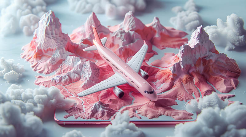 粉红飞机飞越雪山