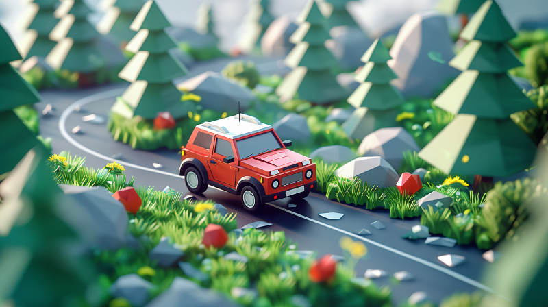 红车穿行林间道