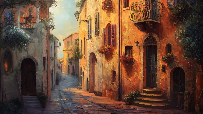 阳光下的小镇街景