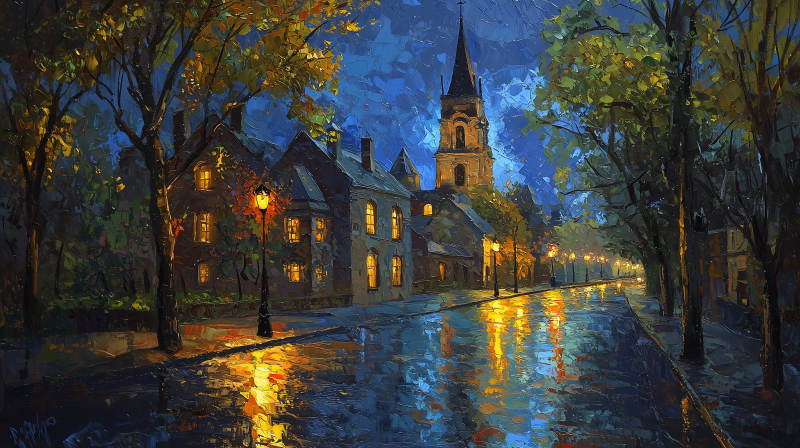 雨夜教堂街景