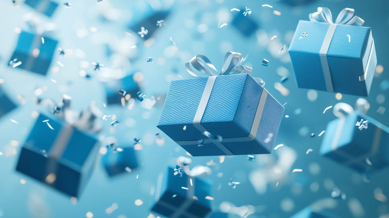 蓝色礼盒飘落