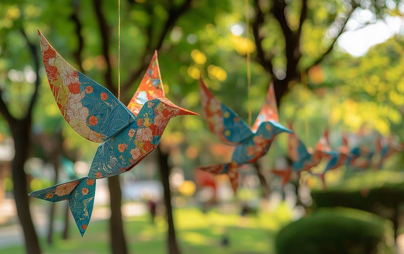 彩纸鸟飞舞林间