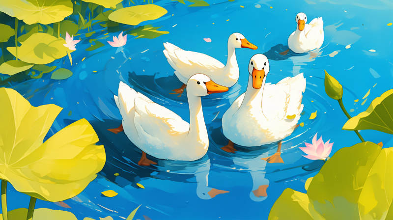 池塘白鸭戏水