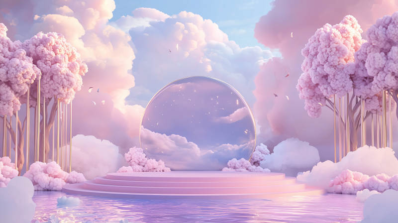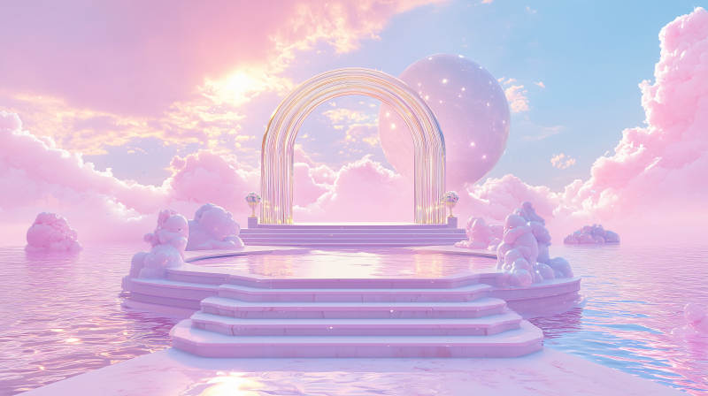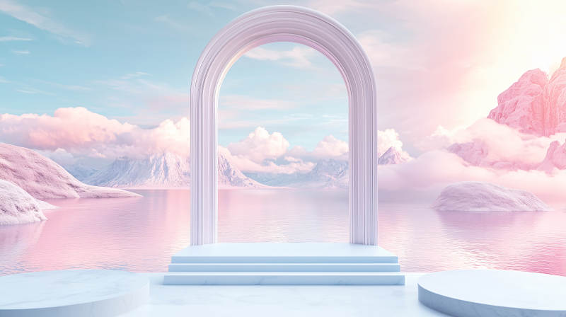 梦幻粉色拱门湖景