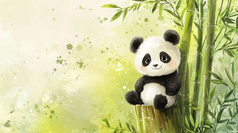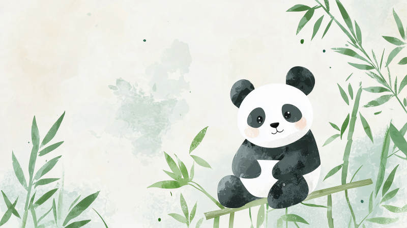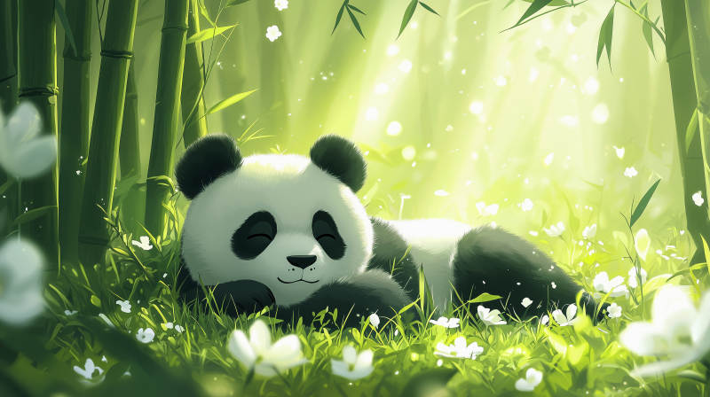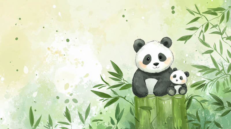 熊猫竹林栖息图