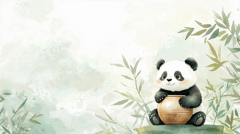 熊猫抱罐竹林间