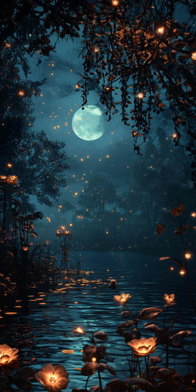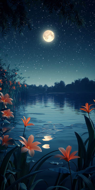 梦幻星空下的宁静湖泊
