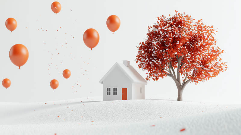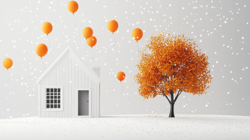 橙色气球与秋日小屋
