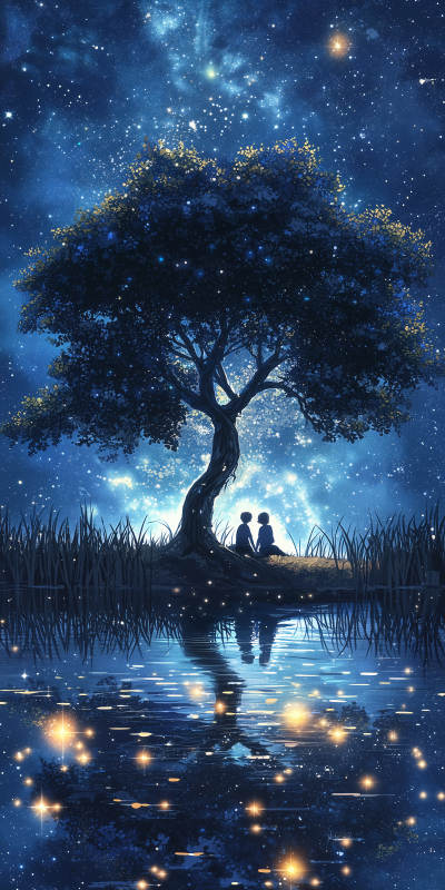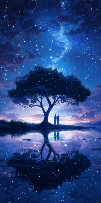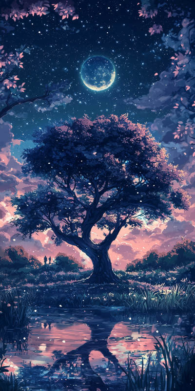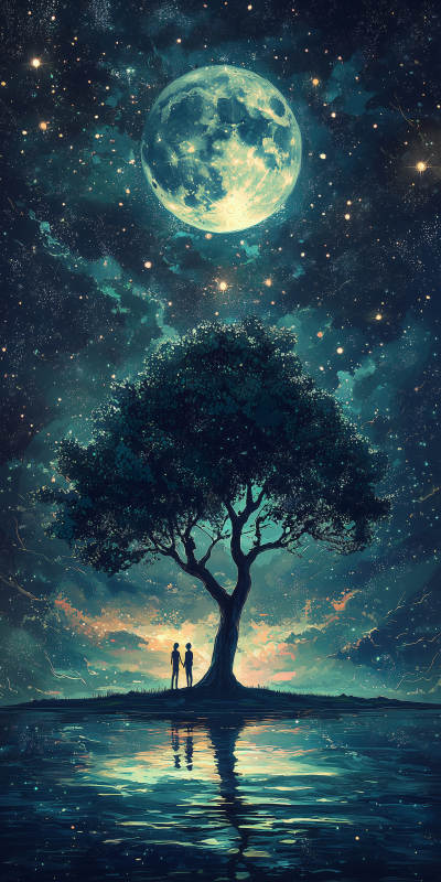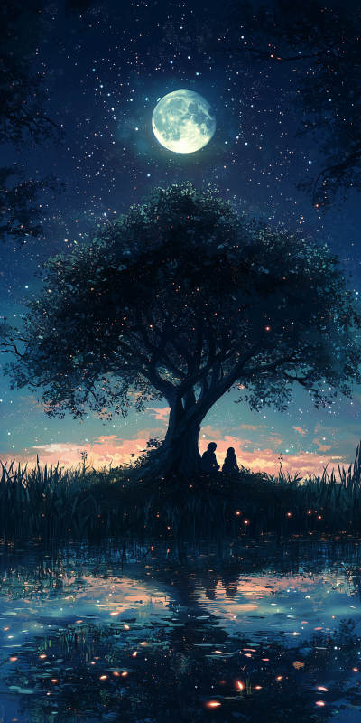 静谧湖畔的月光树