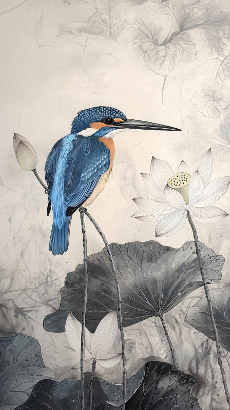 水墨写意翠鸟
