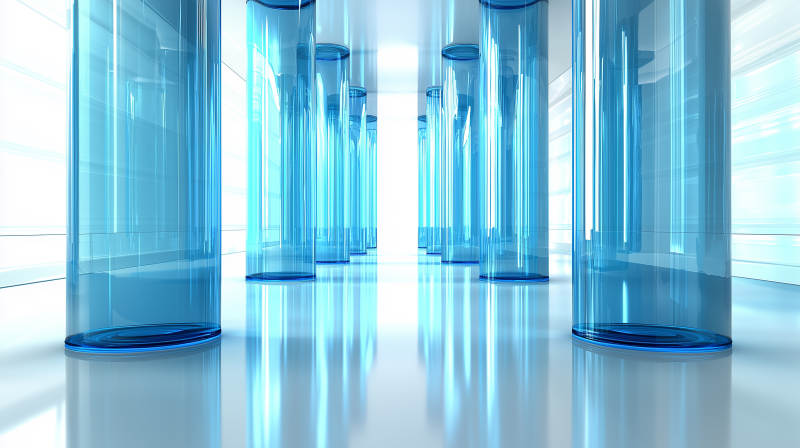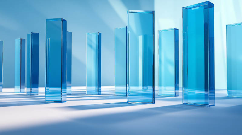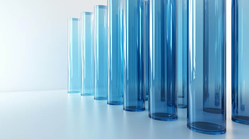 蓝色玻璃圆柱体排列