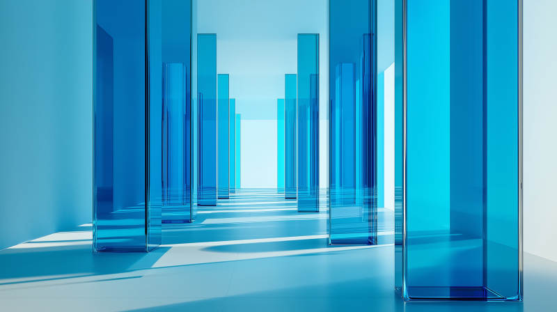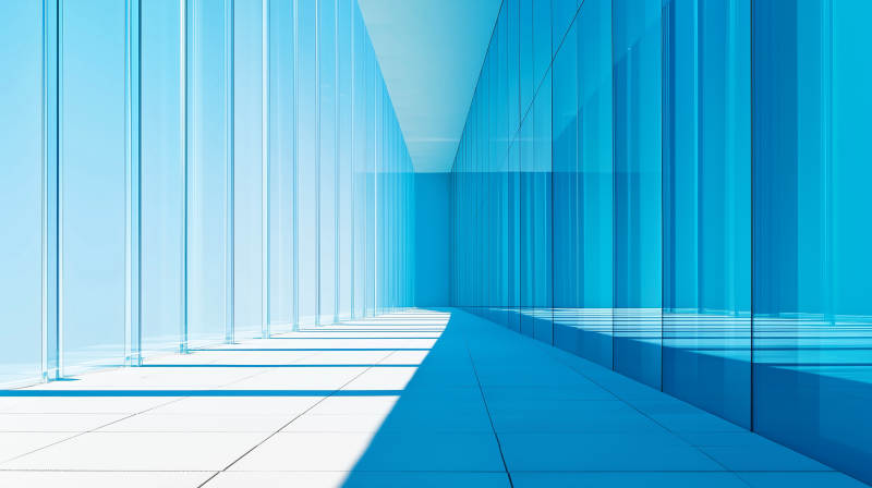 蓝色玻璃走廊