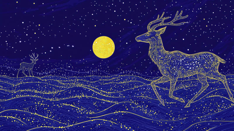 夜空飞跃的灵鹿
