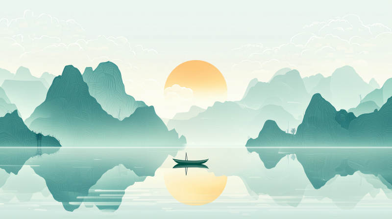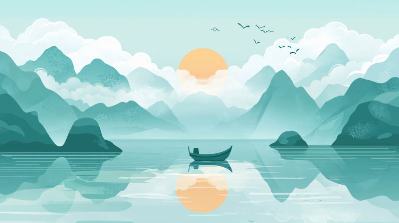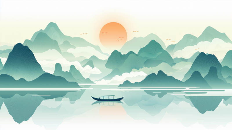水墨画江南古镇水乡
