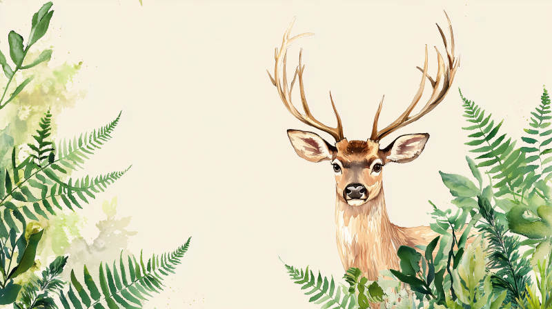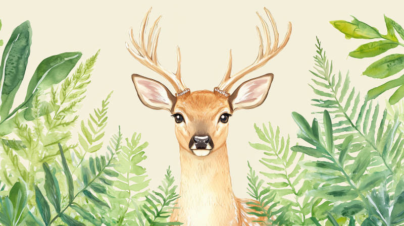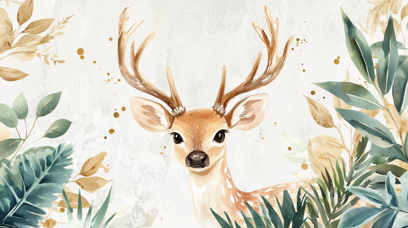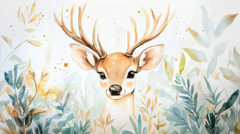 水彩森林小鹿