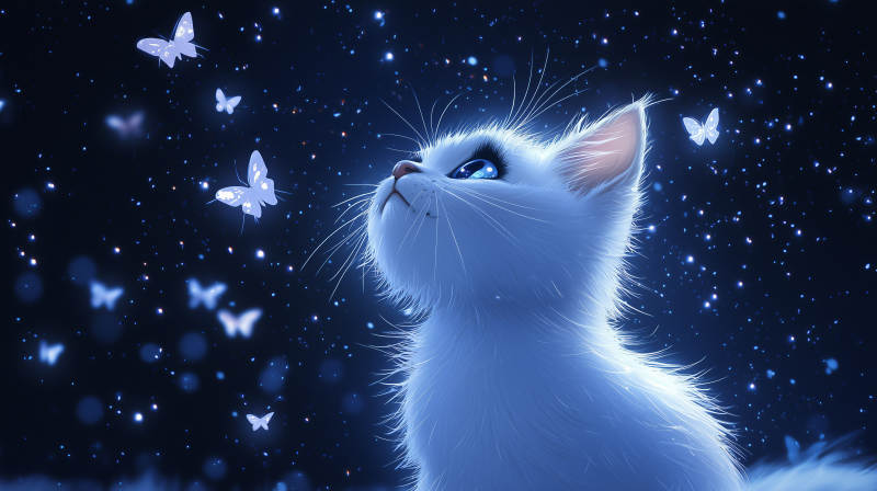 白猫与蝴蝶的梦幻邂逅
