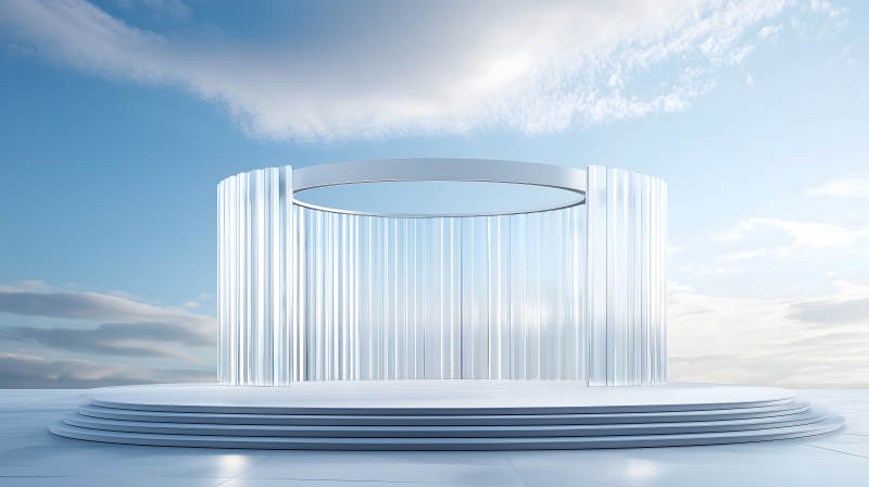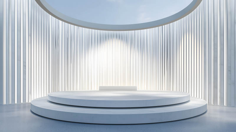 白色竖条纹空间内的圆形白色展示台