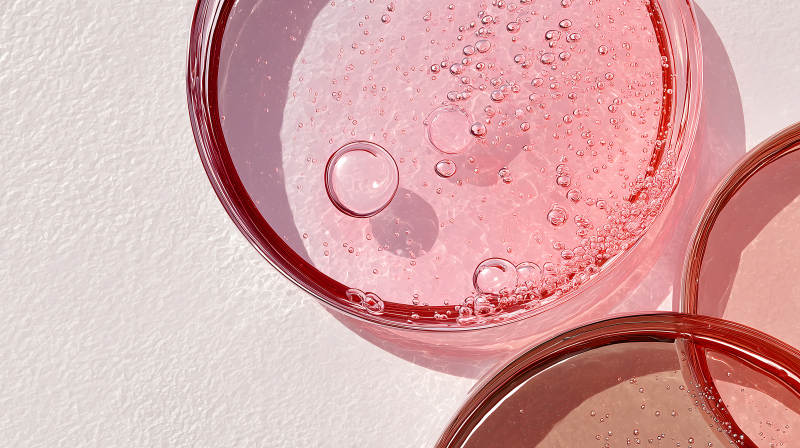 粉色液体中的气泡和器皿