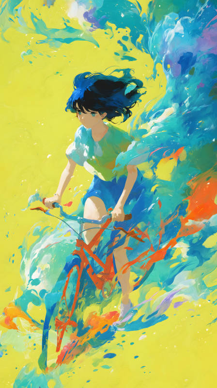女孩与色彩斑斓的自行车