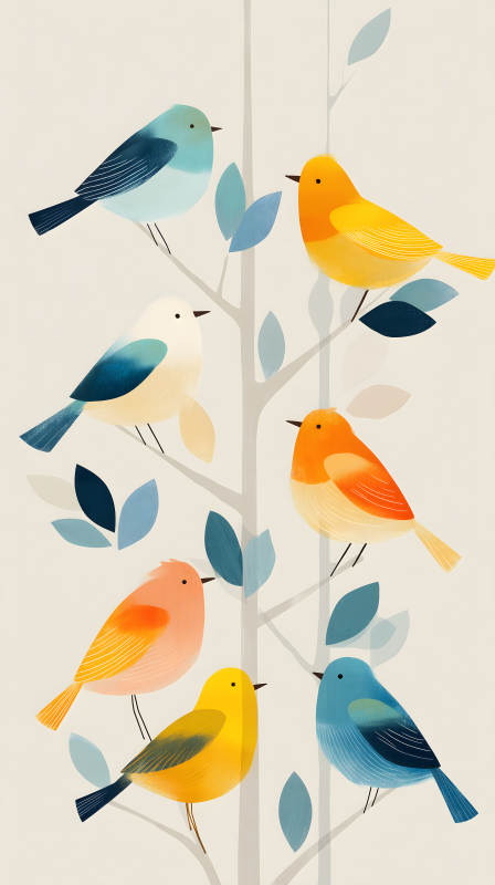 枝头栖息的彩色小鸟