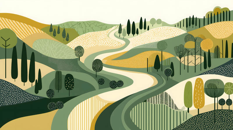 蜿蜒山谷的田园风光