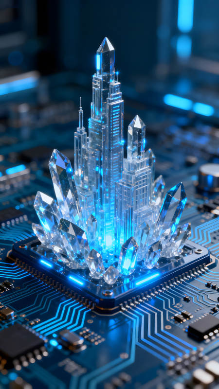 水晶城市在电路板上发光